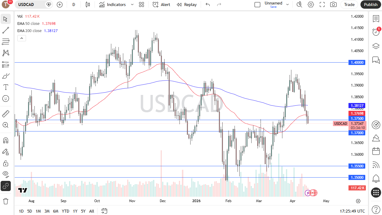The US dollar tried to rally against the Canadian dollar initially during the trading session on Wednesday but gave back some of the gains to show signs of hesitation and exhaustion. All things being equal, this is a situation where I think you are watching action in this area very closely because the area between the 1.3750 level and the 1.37 level makes a lot of potential moves just wait to happen.