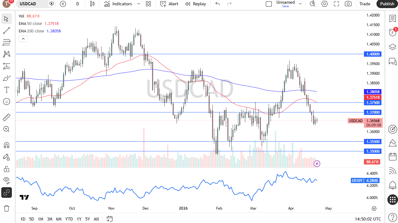 The US dollar initially pulled back just a touch during the trading session on Wednesday but turned around to show signs of life again as we continue to hang around that crucial 4.30% interest rate in the 10-year yield in America. If we can rally from here, the 1.37 level could be targeted, followed by the 1.3750 level. I think short-term pullbacks continue to be buying opportunities as interest rate differentials definitely favor you.